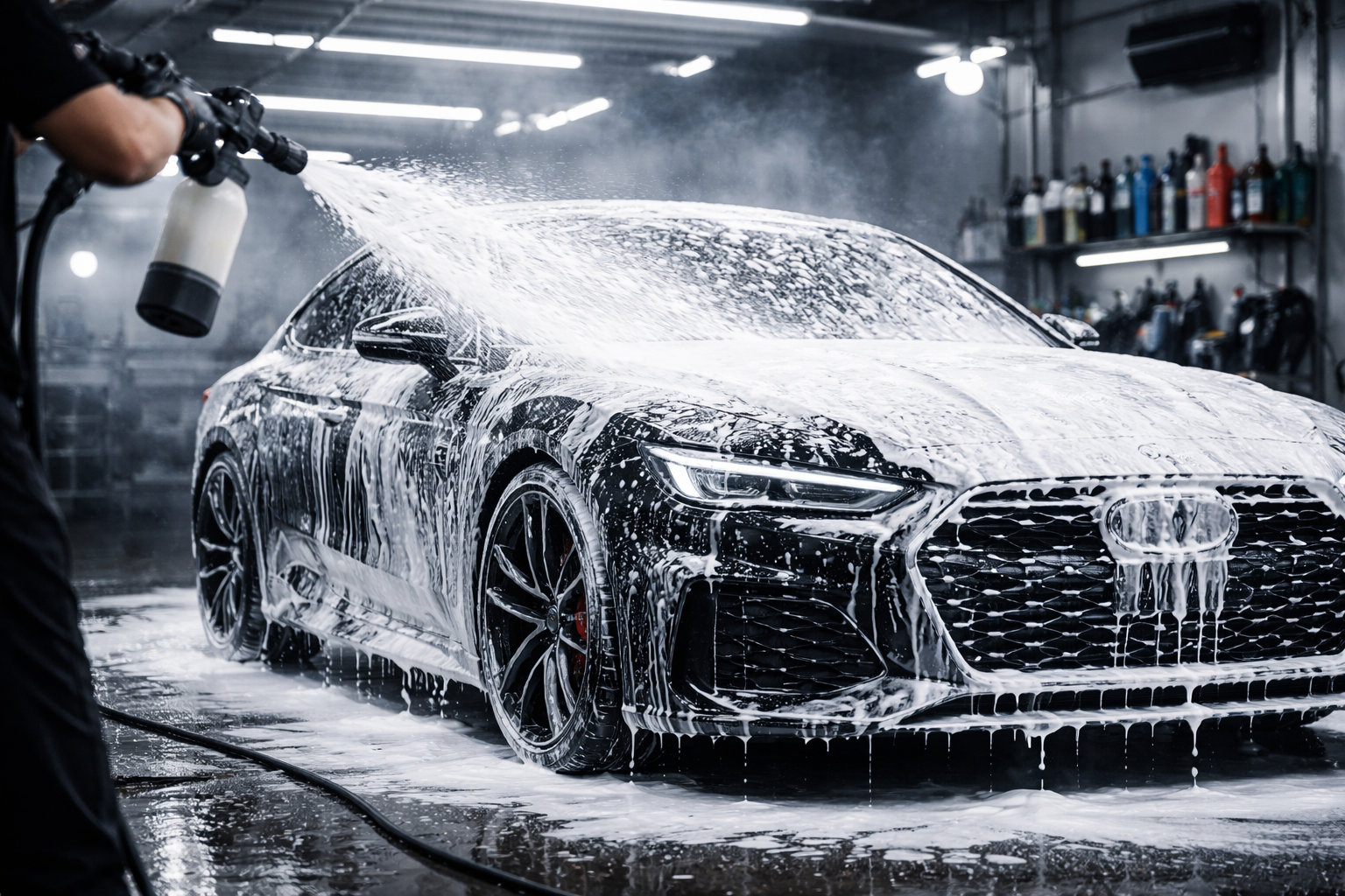 A pré-lavagem profissional consiste na aplicação de produtos específicos para soltar, dissolver e encapsular a sujeira presente na superfície do veículo antes do uso de luvas, escovas ou panos. Diferente de uma simples molhagem, essa etapa envolve técnica, produto adequado e tempo de ação controlado.